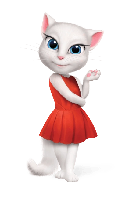 По канону Talking Friends Анджела родилась и выросла в Париже. Уже будучи взрослой она становится успешной певицей и в дальнейшем знакомится с котом Томом и его друзьями, однако обстоятельства заставляют её оставить друзей, ставших для неё близкими, и вернуться обратно в дом. В Talking Tom and Friends Анджела — хорошая подруга для всех ребят, которая познакомилась с остальными членами команды Тома иначе и никуда не уезжала.